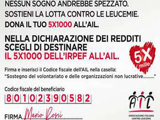 Il 5 x 1000 è un piccolo contributo dal grande impatto per l’ A. I. L. e per tutte le persone che l’Associazione assiste ogni giorno. Con 15.000 volontari e 83 sezioni provinciali da 55 anni A. I. L. promuove e sostiene la ricerca scientifica per la cura delle leucemie dei linfomi e dei mielomi […]