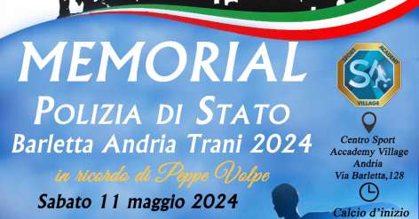 Sabato 11 Maggio saremo presenti al “Memorial Polizia di Stato in ricordo di Peppe Volpe” organizzato dalla Segreteria provinciale del SIULP sindacato di Polizia. Un quadrangolare di calcio a 8 tra le compagini della Questura, Barletta, Trani/Canosa, Polizia Stadale. Il memorial di calcio, a scopo benefico, è un evento che vuole unire la passione per […]