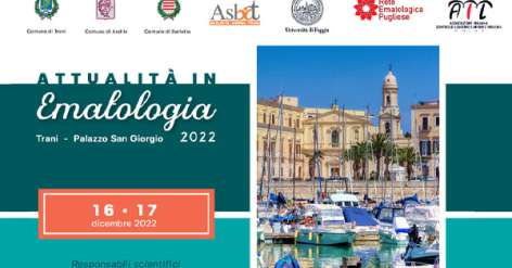 A Palazzo San Giorgio in Trani si terrà una due giorni di Ematologia. Da domani, venerdì 16 dicembre a sabato 17 dicembre, a Trani, Palazzo San Giorgio, si terrà il congresso “Attualità in Ematologia”, presieduto dal dottor Giuseppe Tarantini, direttore del reparto di Ematologia dell‘ospedale Dimiccoli di Barletta e responsabile scientfico, con i professori Giuseppe […]