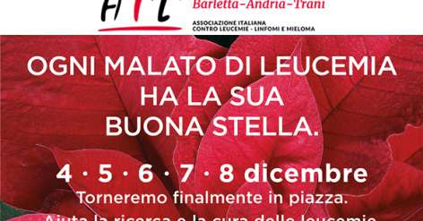 A Natale con un piccolo gesto puoi dare speranza ai sogni dei pazienti ematologici e fare il regalo più bello. PER UN MALATO DI LEUCEMIA LA BUONA STELLA SEI TU! Nuova Sede AIL BAT Trani in Via San Gervasio 76/78