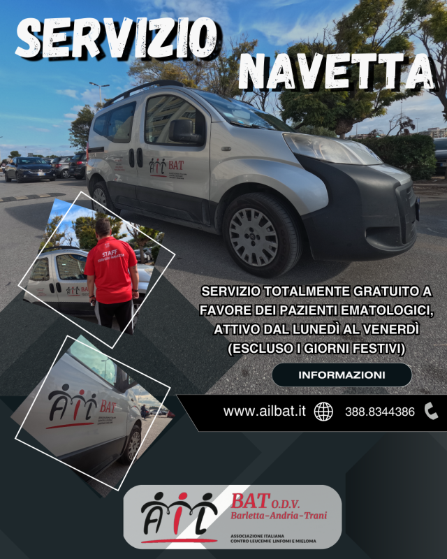 Un abbraccio in più per chi ne ha bisogno. ❤️🩹 Il nostro servizio navetta è attivo per accompagnare i pazienti ematologici all’ospedale Dimiccoli e poi riaccompagnarli a casa. Un piccolo gesto per far sentire meno soli chi sta affrontando un percorso difficile. Grazie a tutti i volontari che rendono possibile tutto questo! Per informazioni è possibile rivolgersi al numero 388.8344386